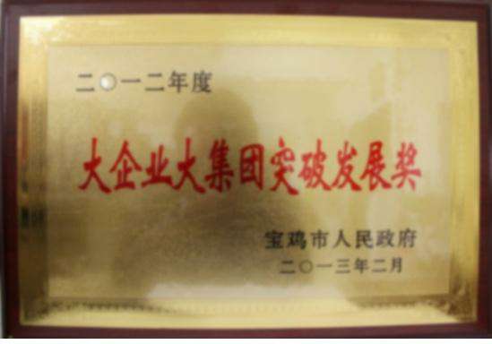 为了表彰先进,树立典型,针对2012年度宝鸡市工业战线良好的发展形式,市政府决定对纳税贡献大的企业单位和个人予以表彰奖励。由于贡献突出,宝鸡开云手机在线官网入口-开云(中国)公司获得“大企业大集团突破发展奖“,”纳税突出贡献奖“ 2个奖项和30万元的奖金。本次表彰大会中,宝鸡开云手机在线官网入口-开云(中国)公司是”大企业大集团突破发展奖“的唯一获奖单位。